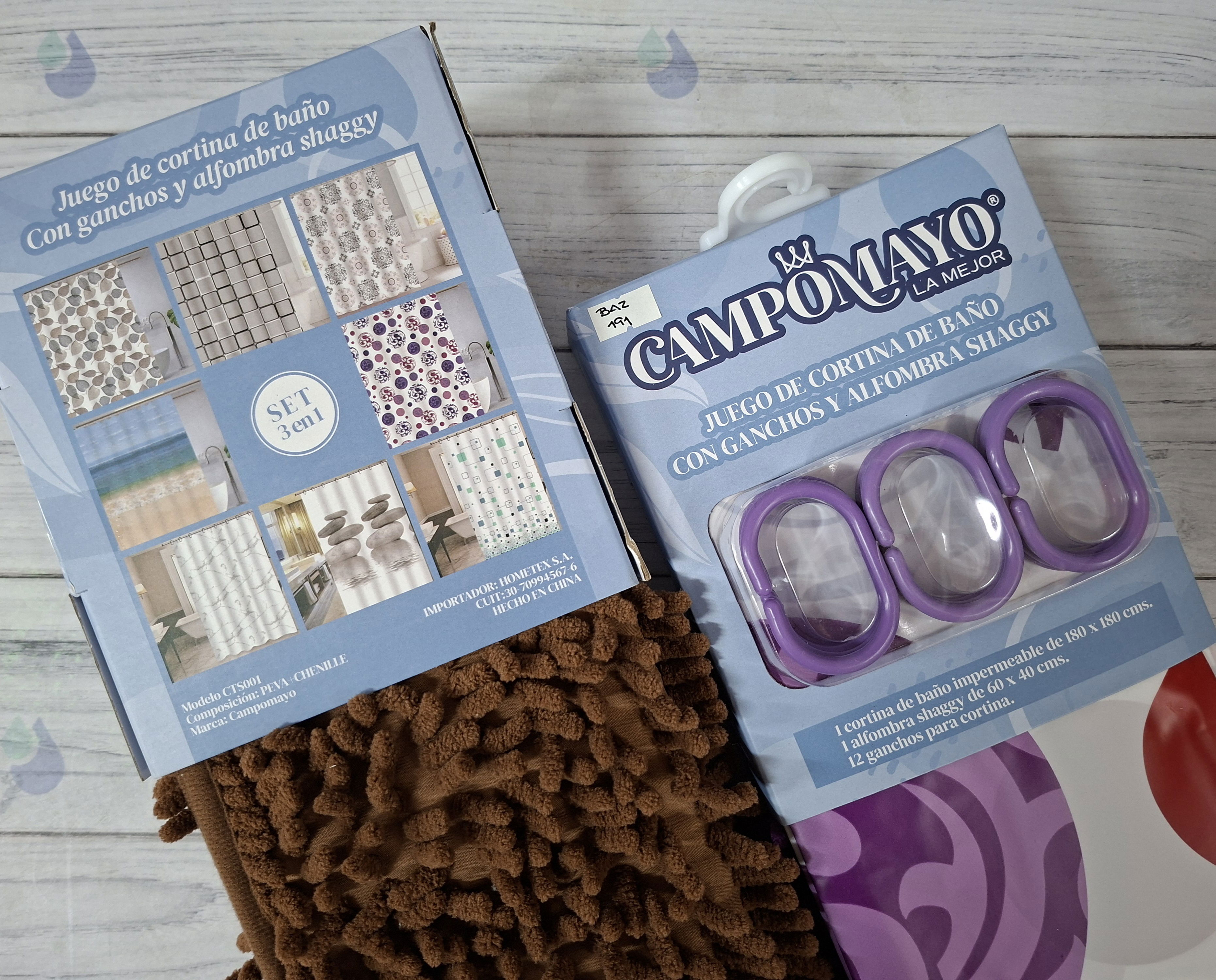 SET CORTINA BAÑO + GANCHOS + ALFOMBRA SHAGY CAMPOMAYO