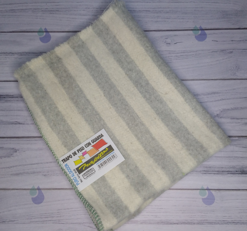 TRAPO CON GUARDA GRIS Y BLANCO PURO ALGODON